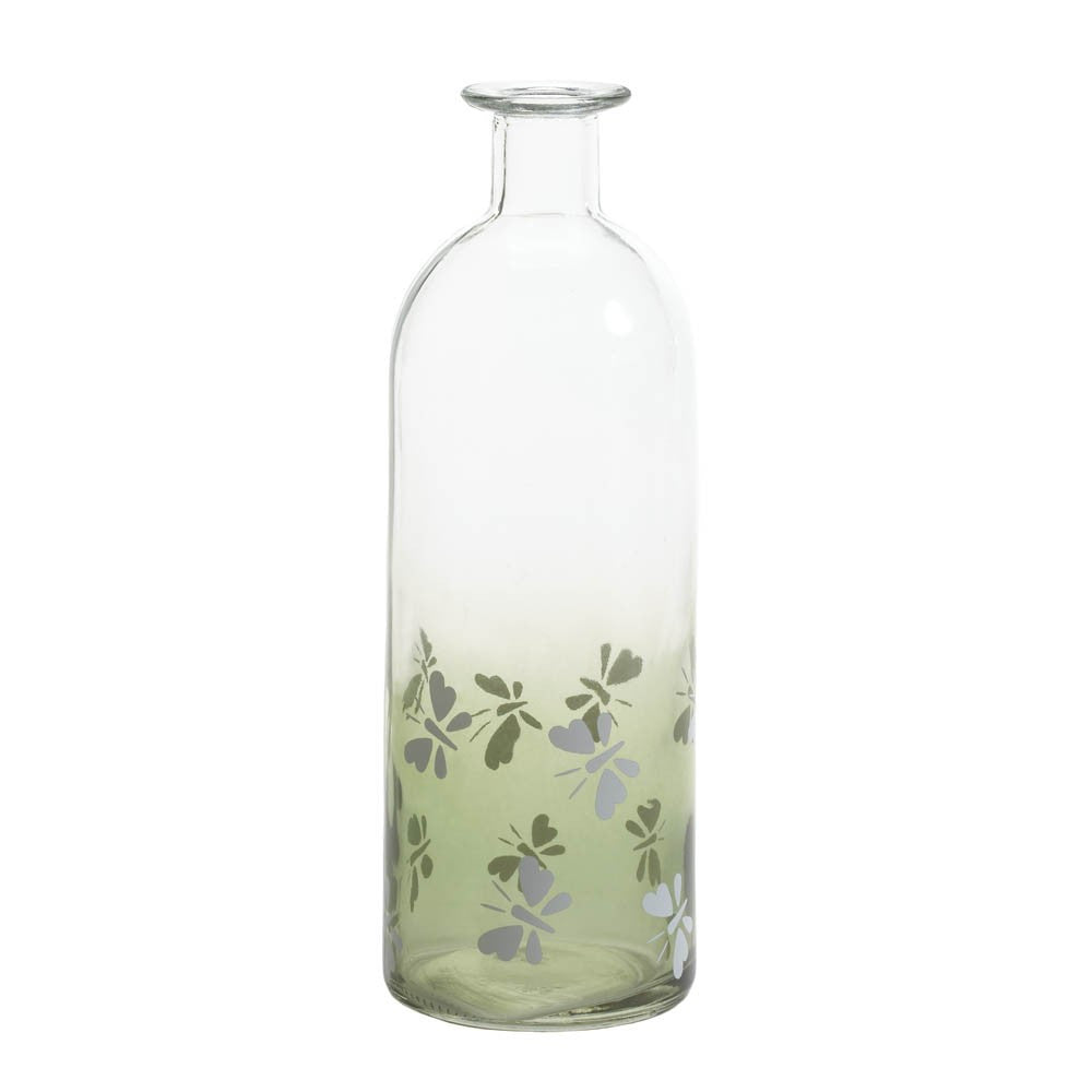 glass bottle features charming butterflies depicted as though they’re