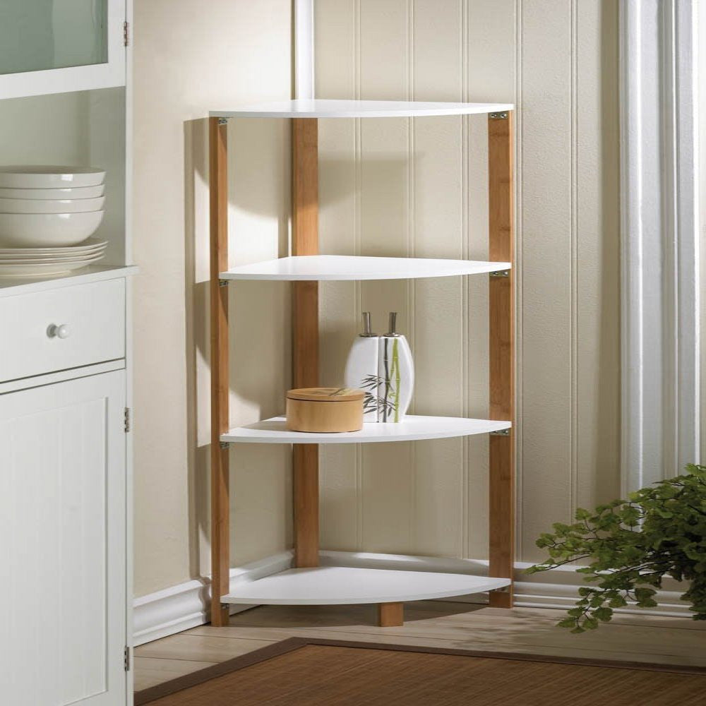 Organize and display your pretty keepsakes with this sleek and stylish corner shelf unit. The bamboo frame with four white triangular shelves make a true statement of your impeccable style while not taking up a lot of space.