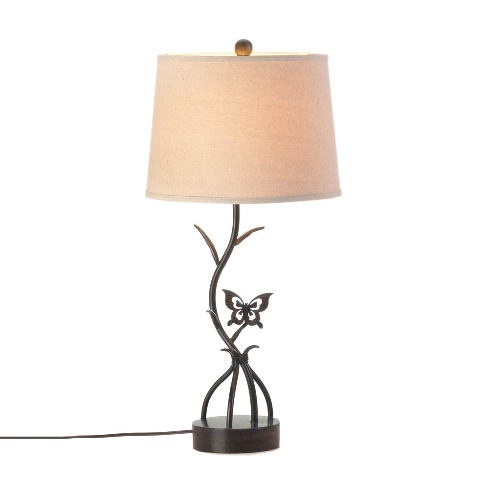 Light up your bedside table or illuminate your living room with this gorgeous table lamp. The iron base features branches and a beautiful butterfly topped with a neutral linen shade that will compliment any decor.