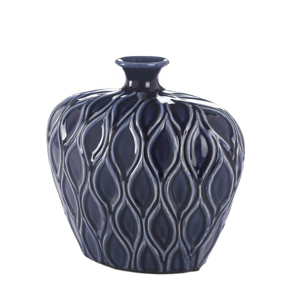 The deep blue waves of this stoneware vase make a dramatic declaration of style. The small lip of this vase is perfect for a one or two of your favorite flowers but it looks just as great on its own.
