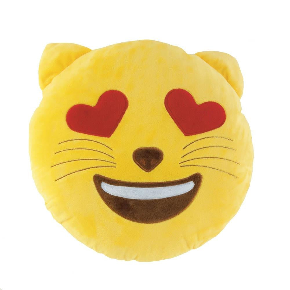 If you love emoji text icons or cats or both this throw pillow is for you! Yellow plush pillow features a cat face with heart-shaped eyes. Perfect for your teens bed.