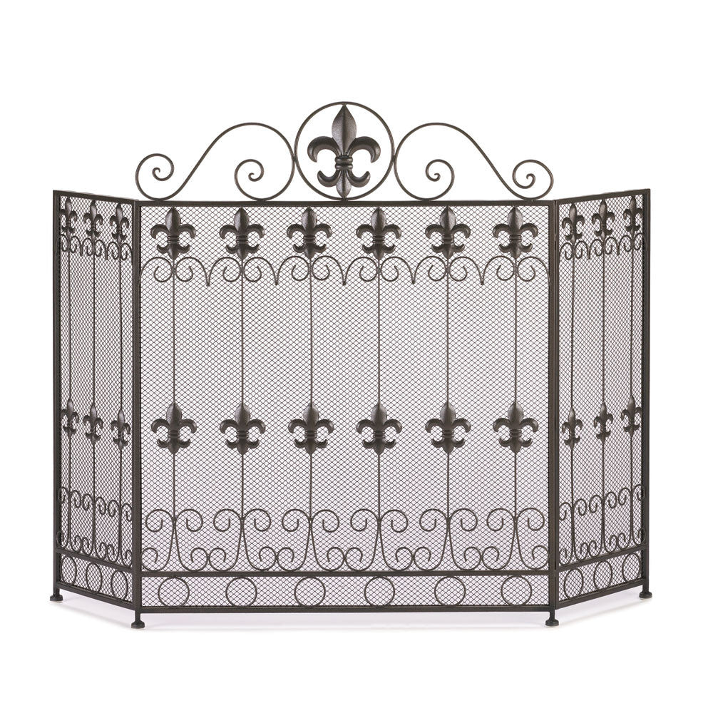 A touch of French form will add a dash of style to your fireplace. This beautiful iron screen features a gorgeous pattern of fleur de lis metal cutouts accented by scrolling designs. The top features a large fleur de lis that accentuates its continental charm.