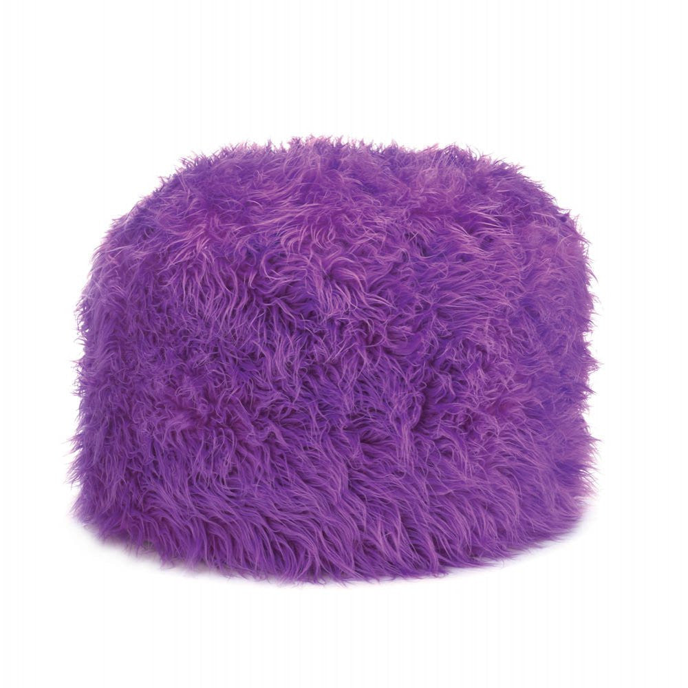 striking ottoman pouf. Its vivid orchid hue makes a bold statement