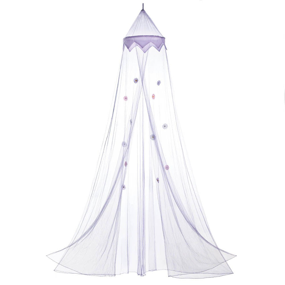 Sweet dreams will bloom under this magical purple canopy. Hang it over any bed and make bedtime beautiful with help from the purple netting and pretty flowers.