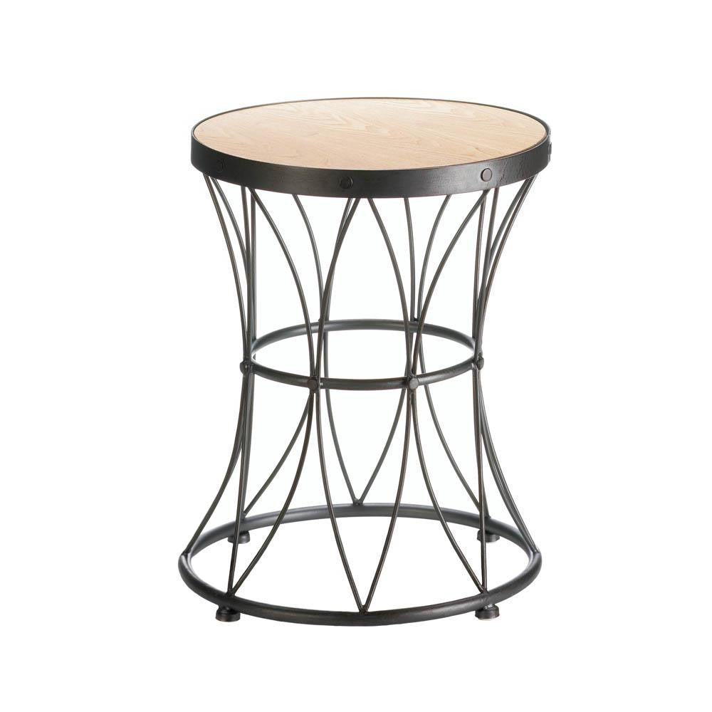 Add some modern industrial style to your room with this stunning stool. The iron framework base is a work of modern art and the wood top softens the overall appeal with a rustic touch. Use it as a stool or side table!