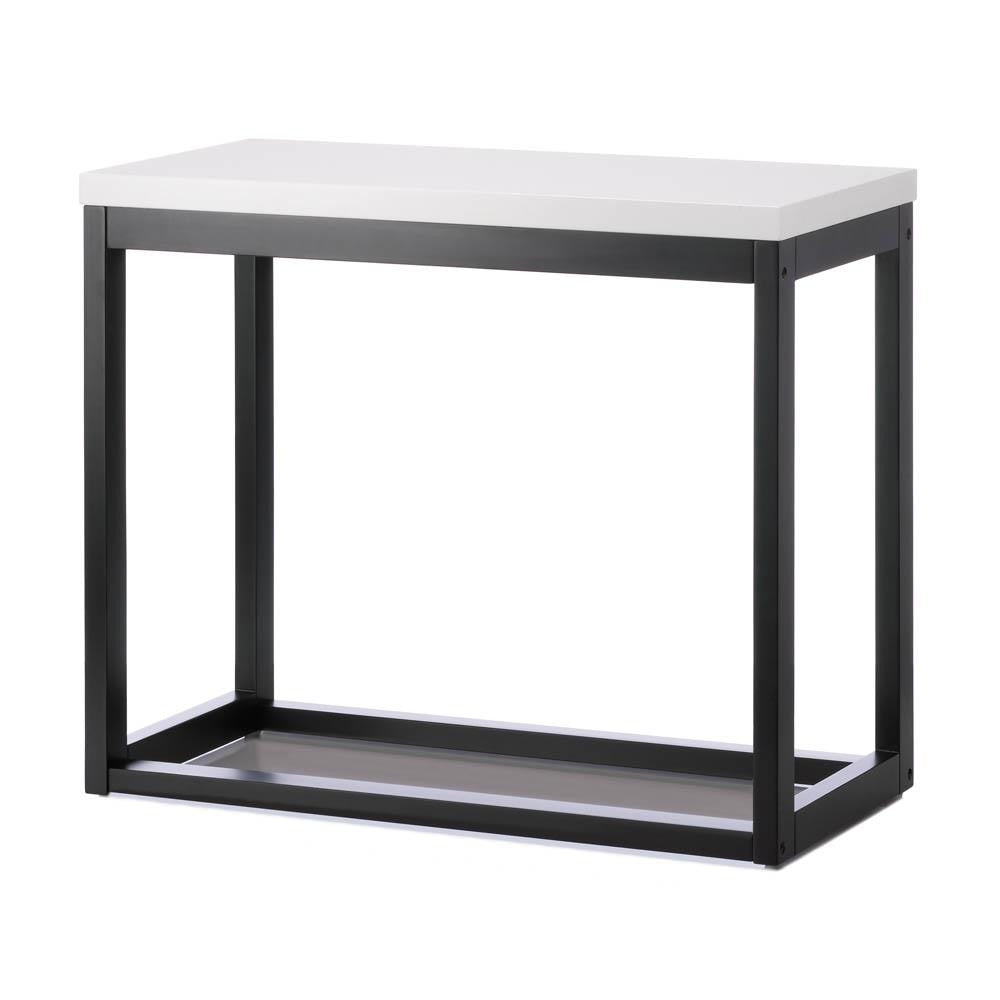 Wow! Modern design meets timeless appeal with this white and black long table. The black frame is accentuated by the sleek white tabletop that will look great in any space. Place it next to your couch bed or in the entry way.
