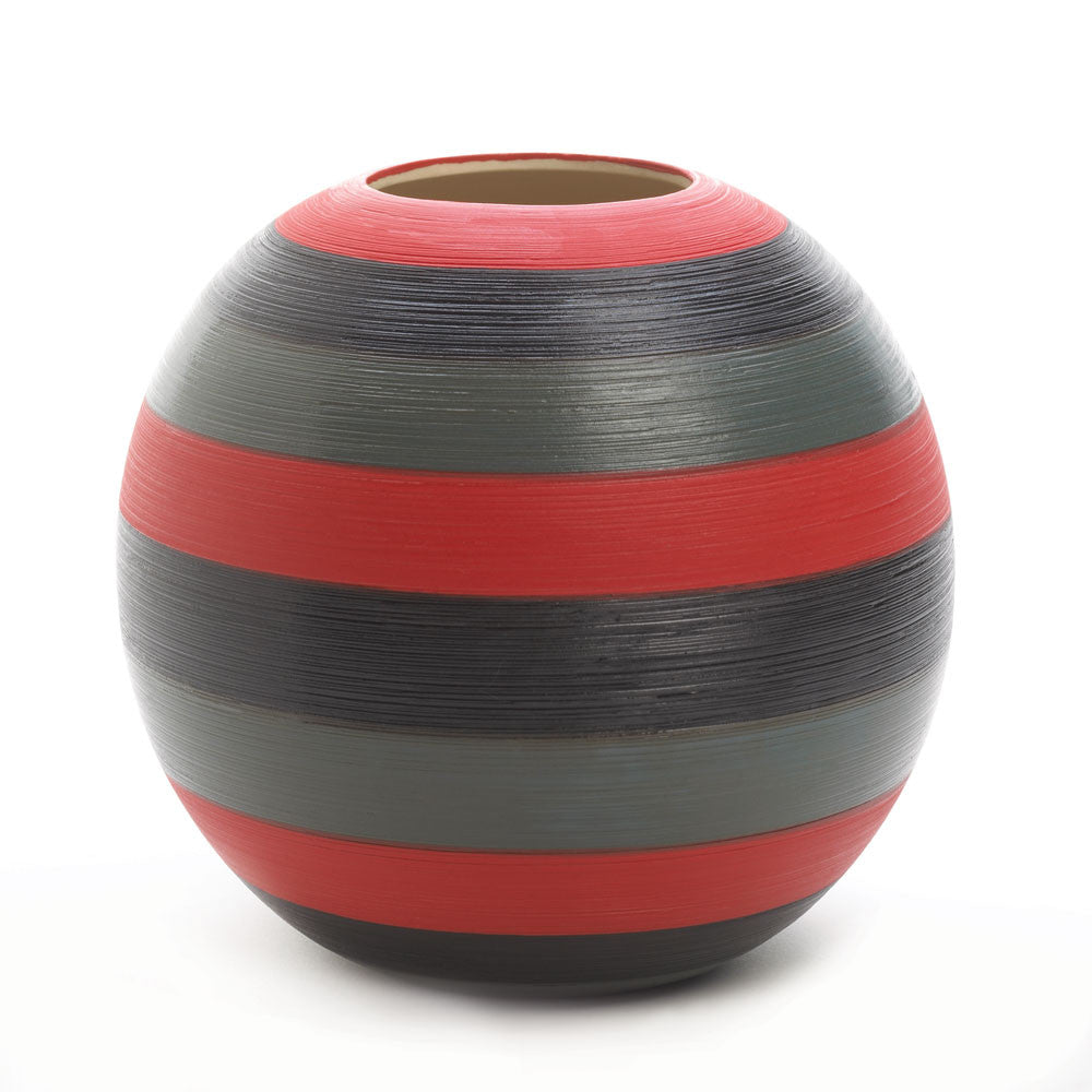 If you're looking for a bold accessory that will put the perfect finishing pop of color and pattern in your room youve come to the right place! The Safari Round Vase features brilliant red deep gray and thick black stripes that make it a standout. Display your favorite faux blooms or reeds or simply leave it solo; either way it will lend an exotic flair to your decor.