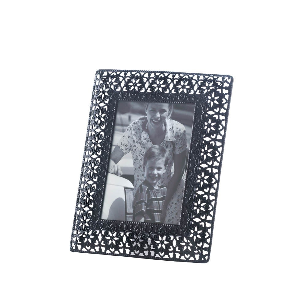 The best way to display your favorite photograph is in an exquisite frame thats just as special. This beautiful iron frame features a floral cutout design and fits a 5" x 7" photo.