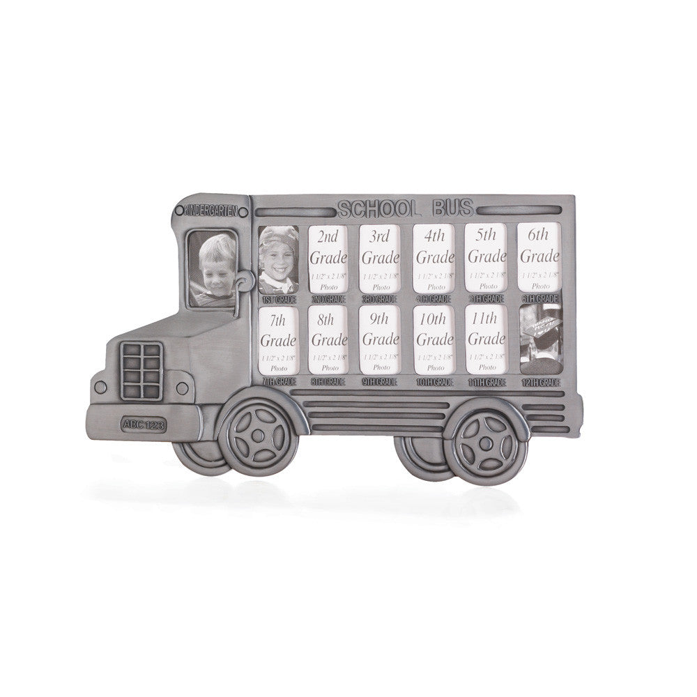 This pewter-finish school bus has enough windows to frame all of your child's wallet-sized class photos from K-12. A charming way to remember all their school days. 12 1/2" x 1/2" x 7 1/2" high.