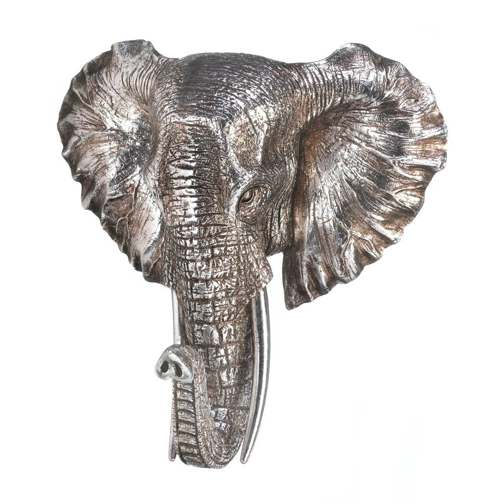 Looking for a decor accent with plenty of WOW factor? This wall-mounted elephant bust is made from polyresin with fine details that really shine with the antiqued silvery finish.