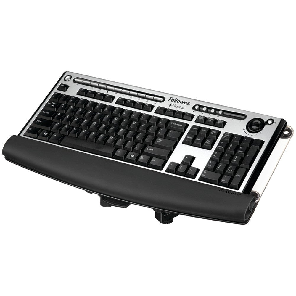 Compact Design Attaches To Desktop Edges Up To 1.5" Thick Without Tools & Fits In Corner & Standard Workspaces Easy Tilt Adjustment Keeps Keyboard In The Correct Position For Typing Innovative Silicone Wrist Support Provides A Soft Cool Place For Wrists & Wipes Clean With A Damp Cloth Extended Knee Clearance Modern Design Accents Any Workspace--whether At Home Or In The Office