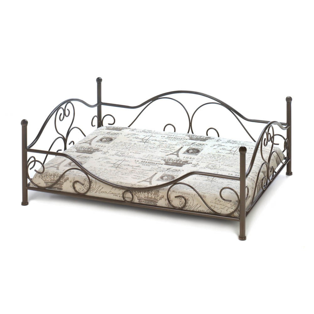 Does your pup or cat insist on world-class amenities at home and abroad? This bed will delight them with regal style and worldly pattern that features crowns and the Eiffel Tower. The iron bed frame features pretty flourishes and the neutral cushion will match any decor. Spot clean only.