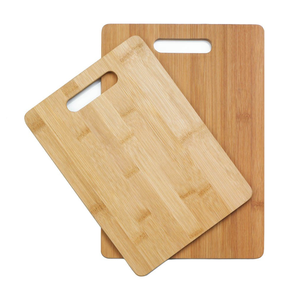 This set of two bamboo cutting boards makes dinner preparation a snap. Two different sizes accommodate whatever youre chopping up and they clean up easily and look great too. Hand wash only; dry with a cloth.