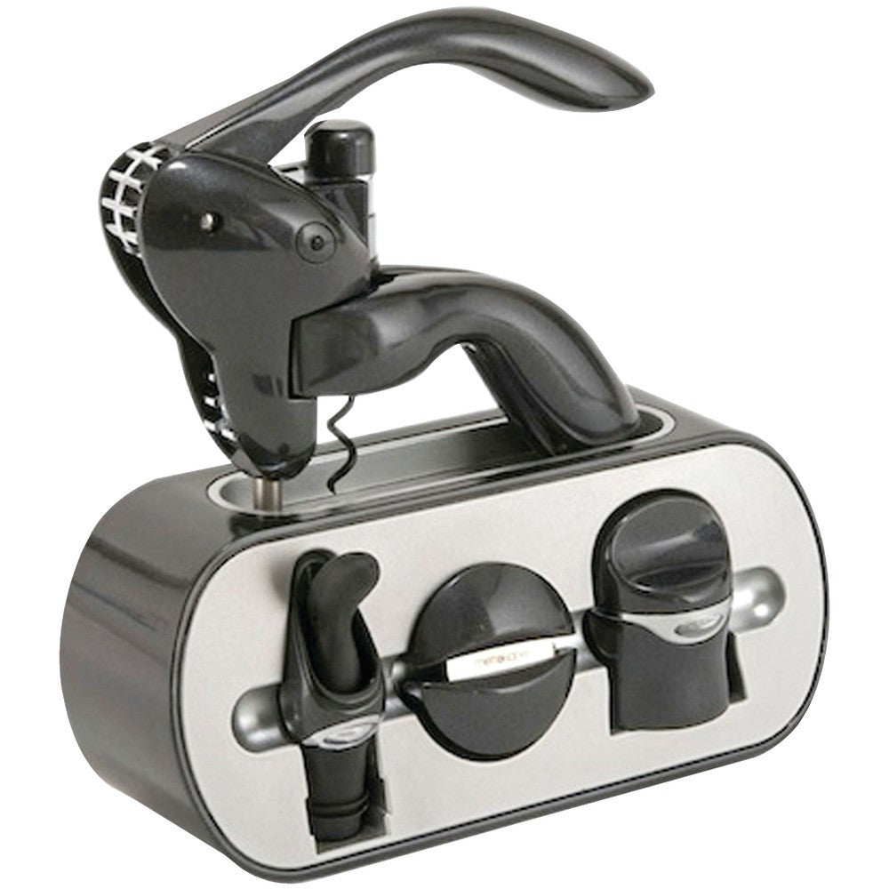 Set Includes: Lever Corkscrew Wine Pourer and stopper--pours Smoothly Drip Free While Stopper Seals Wine Airtight Foil Cutter Wine and champagne Sealer--seals Wine Air-tight And Expands To Seal All Bottle Sizes Spare Spiral Tool Stand