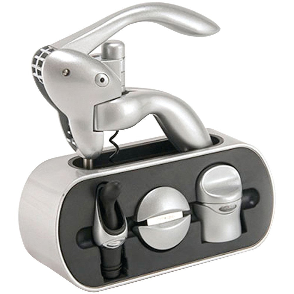 Set Includes: Lever Corkscrew Wine Pourer and stopper--pours Smoothly Drip Free While Stopper Seals Wine Airtight Foil Cutter Wine and champagne Sealer--seals Wine Air-tight And Expands To Seal All Bottle Sizes Spare Spiral Tool Stand