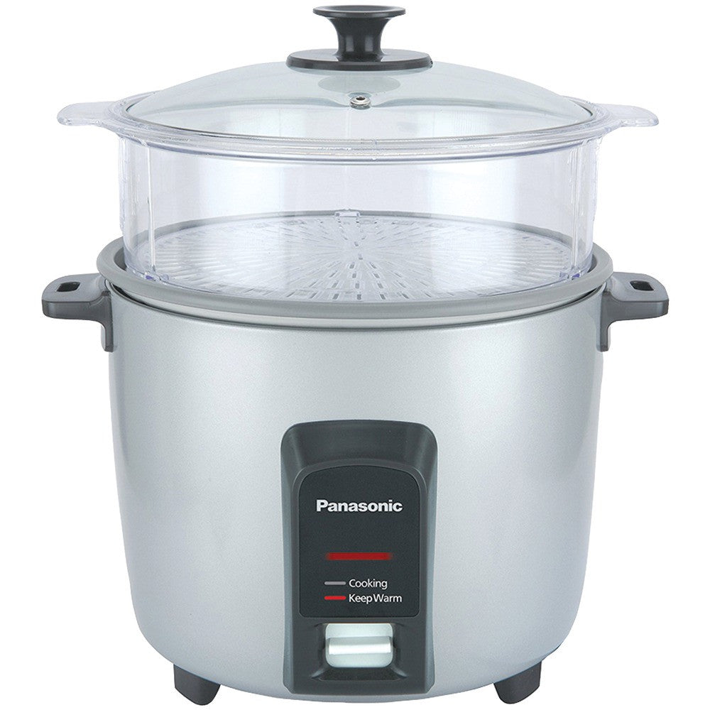 12-cup Rice Capacity 2-dish Separator Keep Warm Function For Up To 5 Hours Cooks Rice & Steams Vegetables Fish & Meats Simultaneously Durable Anchor-coated Nonstick Inner Cooking Pan Eliminates Sticking & Evenly Distributes Heat For Faster Cooking & More Uniformly Prepared Rice Quick Cleanup With Smooth Nonstick Inner & Outer Coatings 1-touch Controls Stay-cool Handles Includes Steaming Basket Nonstick Coated Pan Rice Measuring Cup Rice Scoop 2-dish Separator & See-through Glass Lid Silver