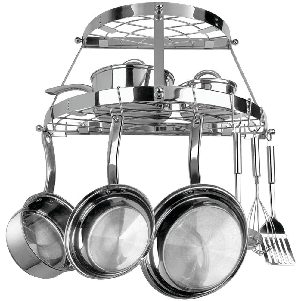 Not only do pot racks give your kitchen a designer look but they are practical as well. The CW6004R is simply the best way to display and store your fine cookware utensils or decorative items and it will soon become the most functional accessory in your home. Mounts on wall. 12'' high x 24'' wide x 11'' deep. Accommodates all kitchens. Complete installation hardware included. With a five year limited household warranty and 40 pound weight limit this product can't get any better! Dim: 12"h X 24"w X 11"d