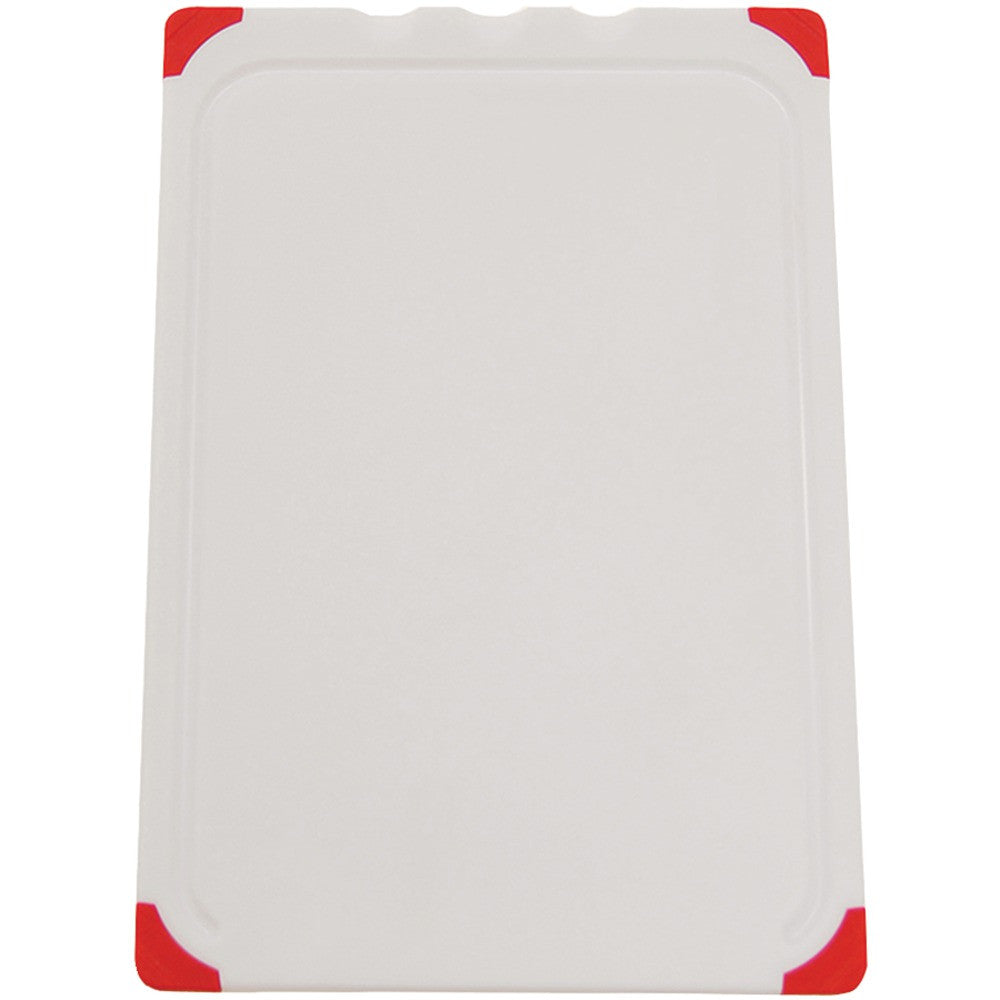 Antibacterial Protection Does Not Dull Knives Nonporous & Nonabsorbent Soft Grip Handles For Easy Handling & Added Stability Reversiblecan Be Used On Both Sides Grooves To Prevent Spillover Dim: 12" X 8" Red & White