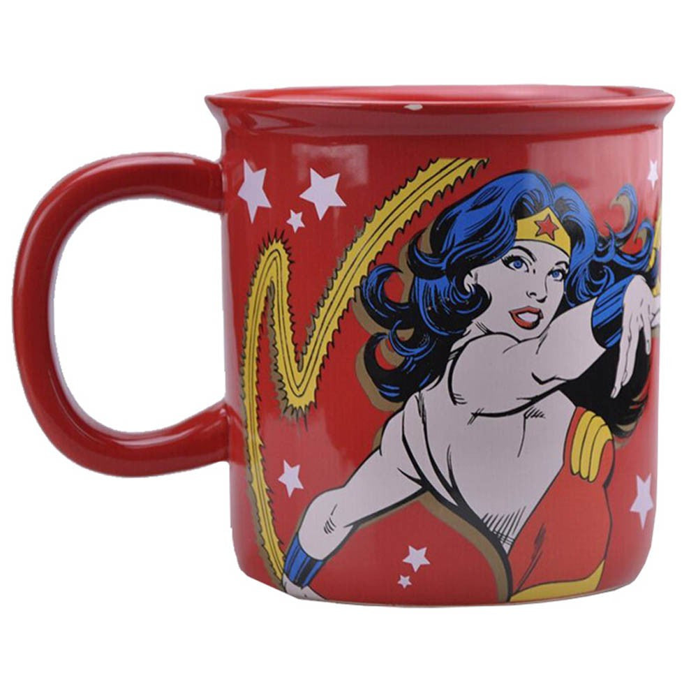 Wonder Woman helps you out with your morning! This Wonder Woman 52 oz. Ceramic Monster Mug features the classic heroine and her symbol. Hand wash only. Not microwave or dishwasher safe.