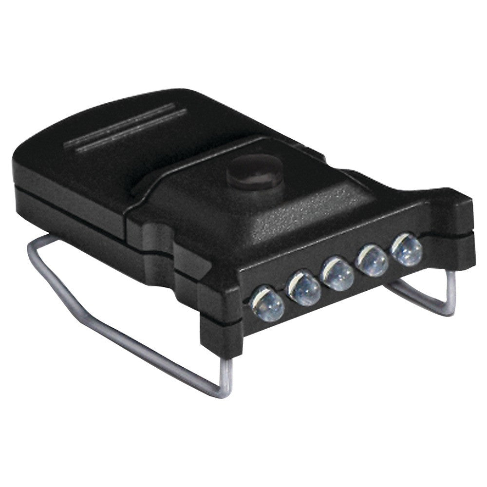 5 Super Bright White LED Bulbs With Built-in 15deg Angle Tilt Weighs Less Than 1oz Burn Time: 2 Hours Top-mount Design Does Not Obstruct Line Of Vision Sturdy Metal Clip Includes 2 Cr-2016 Lithium Batteries