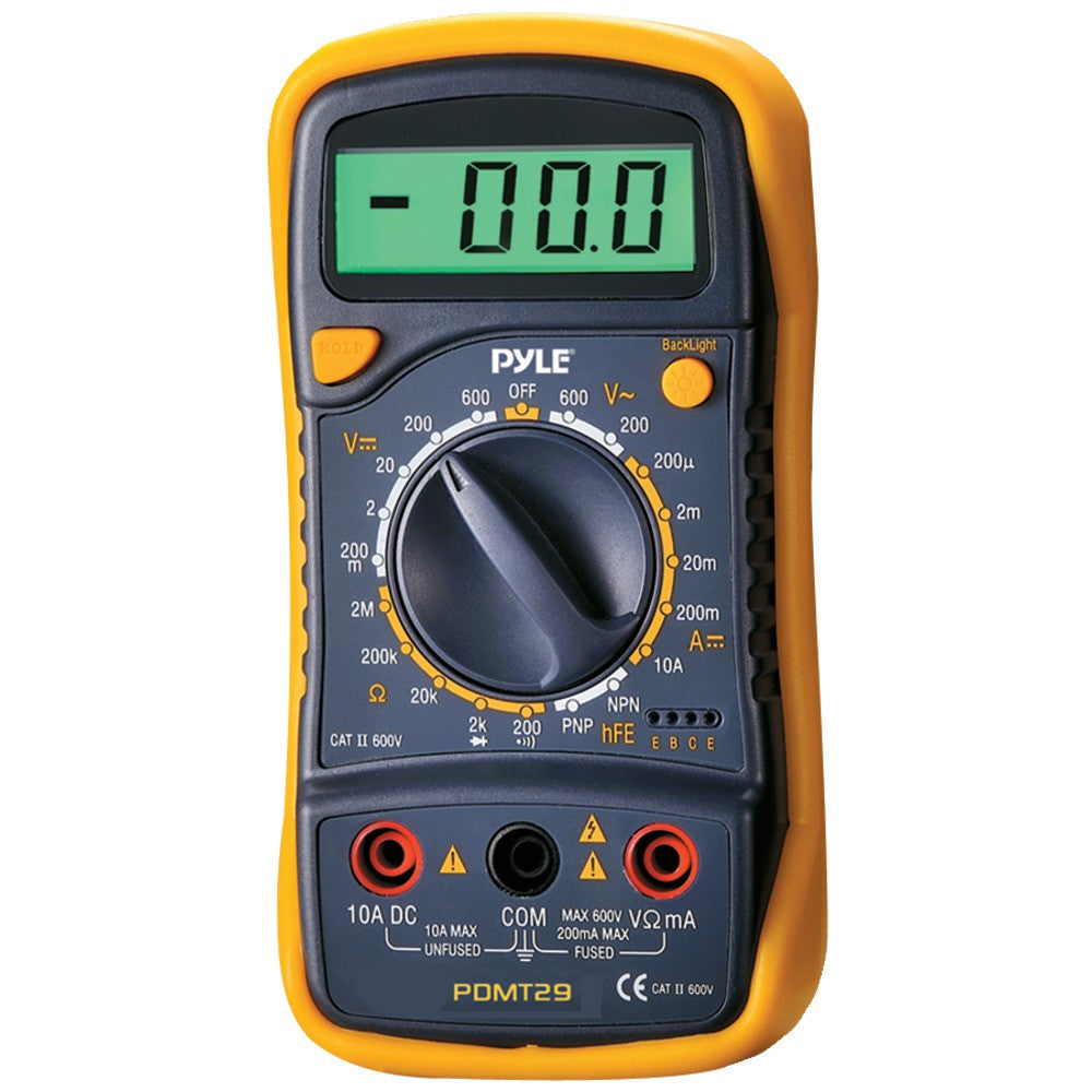 Digital LCD Display Measures Ac Voltage Range Of 40hz - 400hz With Overload Protection Of 600v Rms Measures Dc Voltage Range Of 100v - 600v With Overload Protection Of 600v Measures Dc Current Range Of 0.1v - 10a With Overload Protection Provided By 250ma and 250v Fuse Measures Resistance From .1_ To 2m_ Transistor Hfe Measurement Range Of 0 - 1000 Indicates Continuity With Beep Sound Auto Polarization Refreshes Display Every 2 - 3 Sec Dim: 1.3"h X 2.75"w X 5.1"d Requires 9v Battery Read Instructions & Warnings Before Use